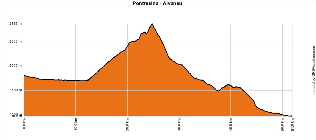 Dieser Übergang ist aber eher eine für Bikes UNGEEIGNETE und WILDE Angelegenheit. Landschaftlich zwar sehr reizvoll, aber auf Grund der zum Teil sehr langen Tragepassagen nur für hartgesottene und trittsichere Biker machbar die ihr Bike auch mal während mehr als einer Stunde tragen und schieben wollen !