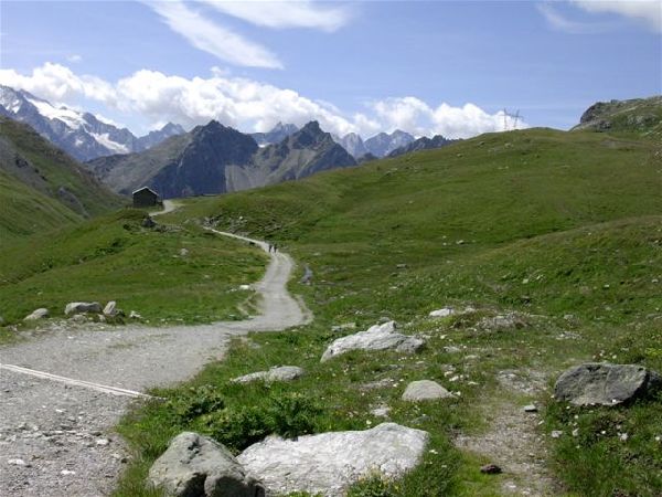 Die Tour führt über drei Pässe. Ueber den Julierpass gibt es leider keine Alternative zur Hauptstrasse. Die Strecke Silvaplana bis zur Julierpasshöhe auf 2281m misst ca. 7.9 km (ca. 90Min). Die anschliessende ca. 20 Min dauernde Abfahrt (ca. 8.5km) nach Bivio auf 1779m, ist wieder entspannender. Vor dem Dorfeingang in Bivio geht es zuerst steil bergauf. Bis zur Passhöhe auf dem Septimerpass (2320m) ist die Naturstrasse sehr breit und gut befahrbar. In kurzen Passagen haben wir aus konditionellen Mängeln etwas schieben müssen. Wir benötigten für den 6.6km langen Aufstieg ca. 1 Stunde.