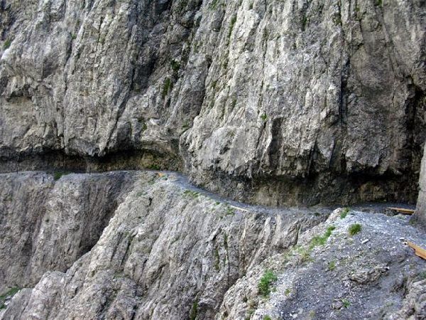 Der Aufstieg auf dem aus dem Felsen gesprengten Weg ist wieder etwas moderater in der Steigung. Aus Sicherheits- und konditionellen Gründen haben wir unsere Bikes in diesem Abschnitt geschoben und dafür die Wunderbare Aussicht in die Schlucht genossen.