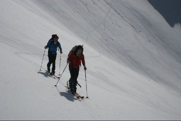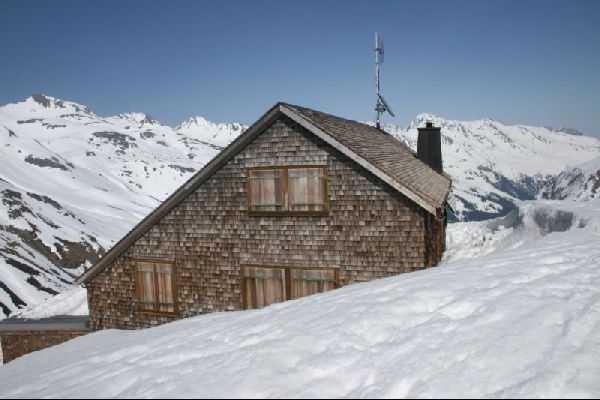 Von hier hat man nun die Möglichkeit, einer der drei 3000er zu machen, Piz Segnas, Piz Sardona oder Piz Dolf. Da wir leider wegen des Umwegs schon etwas spät dran waren, nahmen wir direkt die Abfahrt zur romantischen Sardonahütte unter die Skis.