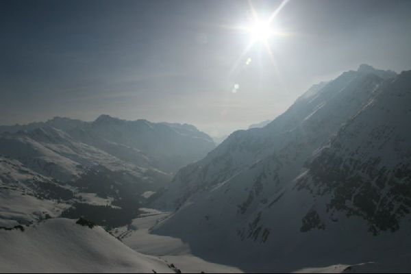 Am nächsten Morgen nahmen wir wieder den Aufstieg der gestrigen Abfahrt in Angriff. Leider waren dann alle 3000er in den Wolken/Nebel und wir nfuhren dem gestriegen Aufstieg als Abfahrt bis zur Segnas-Hütte ab. Den Rest folgten wir wegen den Gefahren von Nassschneerutschen auf den sicheren Skipisten von Flims direkt zum Parkplatz.