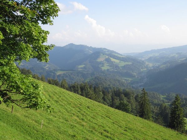 In Littenheid dem schöngelegnen Dorf ist der Start. Zuerst durch das Thal einem sehr schönen Naturschutzgebiet entlang bis nach Anwil. In Oberwangen beginnt ein schöner Wald Singel- Trail, der es mit den vielen Wurzeln in sich hat. In Finschingen lohnt sich ein kleiner Halt beim Kloster. Nun geht es steil auf einer festen Strasse hinauf in die Au. Jetzt geht der Weg (im Winter: Schlittelweg Allenwinden - Au)in einem weiteren Abschnitt hinauf nach Allenwinden. Jetzt sind ca. 2/3 der Steigung geschafft. Die letzte Steigung führt im ersten Abschnitt zum "Dreiländerstein" an dem sich der Kanton Thurgau, Kanton Zürich und Kanton St. Gallen angrenzen. Die koordinaten sind:(N47 22.550 E8 56.617)Bei diesem Punkt empfehle ich den Weg links zu nehmen, dieser ist ein bisschen einfacher. Stetig werden in einer "Schlangenlinie" auch die letzten Höhenmeter und so schon bald der Höhepunkt erreicht. Bravo, jetzt ist das gröbste geschafft. Der Rückweg ist nicht direkt, sondern führt zuerst eine Wald- Abfahrt hinunter zum "Dreiländerstein" dann weiter Richtung Allenwinden bis zu der Abzweigung wo es beim Aufstieg ein Stück dem Waldrand entlang ging. Bei dieser Verzweigung geht es nun hinein in den Wald auf einem wunderbar geführten Panorama- Höhenweg (950m.ü.M.)abwechslungsweise zwischen fünf Hügel hindurch. Wenn die Hulftegg erreicht ist geht es rassant die Passstrasse hinunter nach Mühlrüti. Weiter auf asphaltierter Strasse zurück nach Fischingen. Tipp:Im Kloster wirde ein sehr gutes Früchtebrot in Selbstbedienung verkauft. Mhmmmm .....