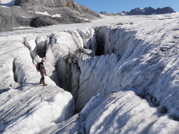 Eine ruhige, schöne Gletscherwanderung. Je mehr man in der Mitte des Gletschers läuft, desto mehr Spalten muss man traversieren. Nur mit entsprechender Ausrüstung.