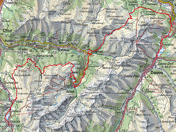 Originalstrecke der Mountain-Rally 2001 bis 2004 von Chur nach Scuol.