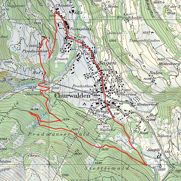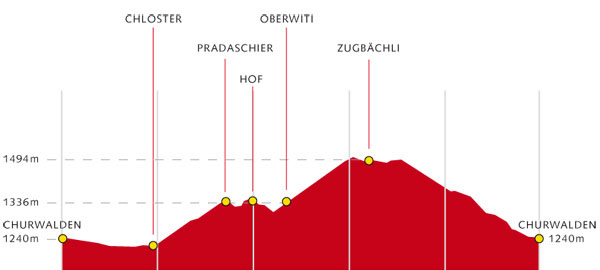 BeschreibungAusgangspunkt ist das Informationsbüro in Churwalden. Die Tour startet mit einem gemütlichen Einrollen bis zum Kloster am Dorfrand und führt danach immer der Signalisation