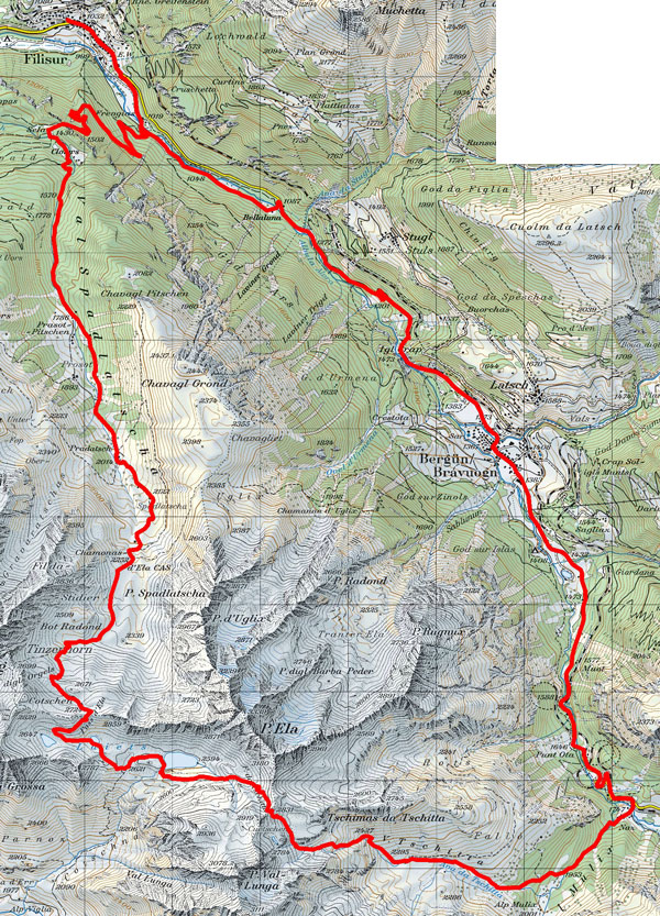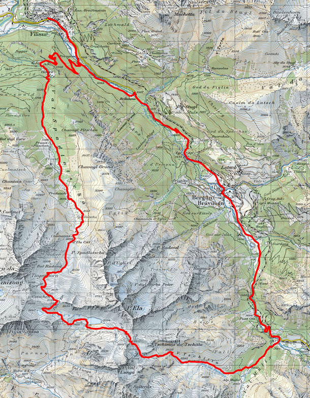 BeschreibungDie Ela-Rundtour ist eine bekannte hochalpine Wanderung mit Start und Ziel in Bergün. Wir haben die Tour etwas abgeändert in dem wir in Filisur gestartet sind. Zudem haben wir die Tour mit dem Bike absolviert.