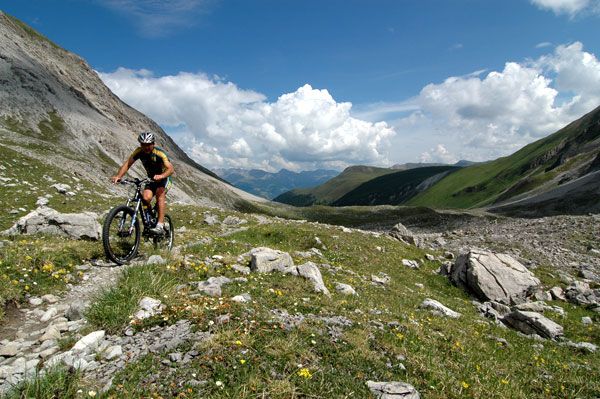 Die Anschliessende Abfahrt ins Val Tschitta und weiter bis Naz ist am Anfang sehr steil und nicht fahrbar. Nach einigen hundert Metern ist der Trail aber bis auf einige wenige extreme Passagen für geübte Biker/innen fahrbar.