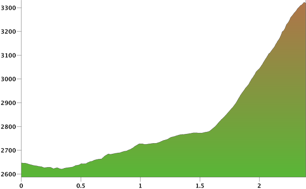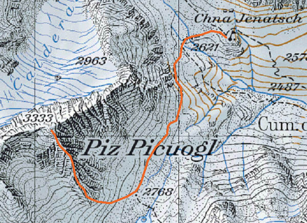 Von der Chamanna Jenatsch CAS (2'652m) folgt man dem als alpine Route marktierten Weg zur Fuorcla d'Agnel bis auf das Vorfeld des Vadret d'Agnel und geht zum Gratfuss (2878m) hinüber. Zuerst steigt man über Geröll und Blöcke, dann ein kurzes Stück in einem Kamin an. Man verlässt diesen nach Osten zur Kante, die weiter oben nur noch wenig ausgeprägt ist. Die meisten kleineren Absätze im Mittelstück des Grates werden überklettert. Die Blöcke im oberen Teil sind leichter.