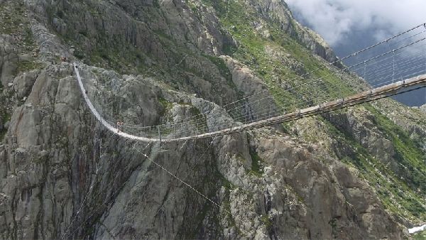 Von der Bergstation bis zur imposanten Hängeseilbrücke sind 1:30 h auf dem Wegweiser angegeben. Diese Zeitangabe sind für Familien mit Kindern. Ohne kann man rund eine Stunde rechnen.