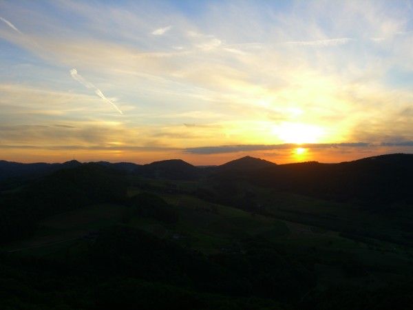 Danach geht es auf Forstwegen in Richtung Staffelegg und dann hinab ins Dorf Thalheim, wo man sich in einem der zahlreichen Restaurants eine Pause gönnen kann.