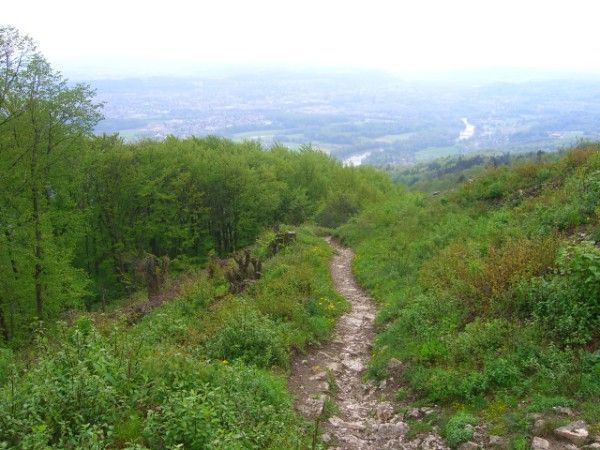 Dann geht es wieder bergauf und schliesslich auf Trails und Forstwegen hinunter ans Aareufer. Die Strecke nach Aarau führt gemütlich entlang der Aare.