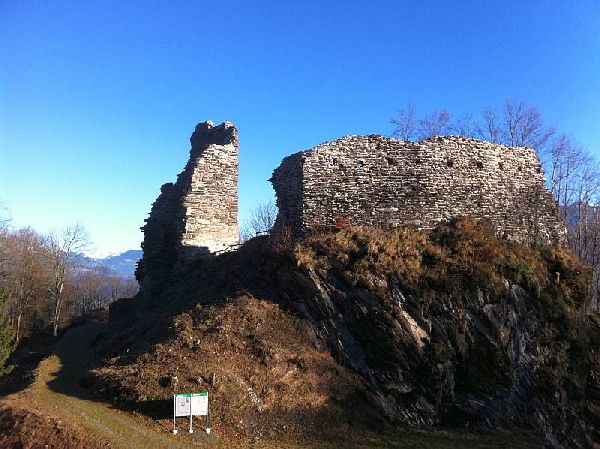 wenige 100m abfallender Weg, beim Waldeingang lk hinunter "Sagenweg",dann WW gelb folgen zur Ruine,