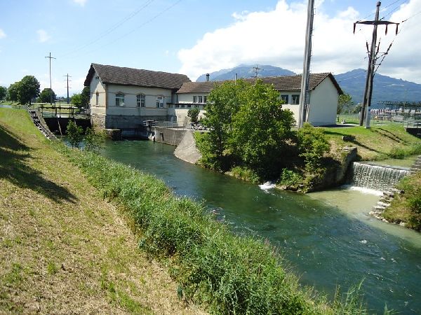 beim SAK-Flusskraftwerk in Oberriet geradeaus dem Binnenkanal entlang