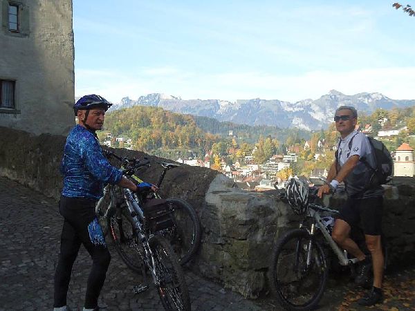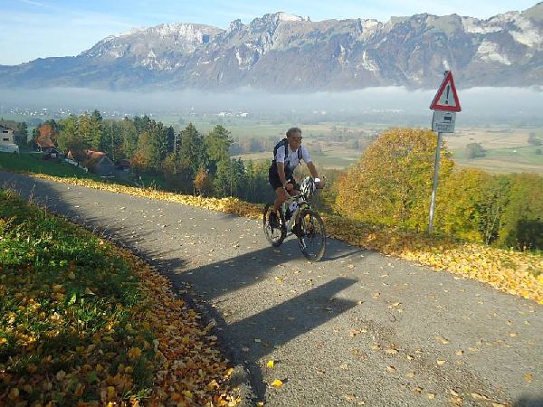 Allerdings wird dadurch die Wegbeschreibung etwas anspruchsvoller. Die älteste Stadt Vorarlbergs wurde um 1200 gegründet. Kurze Zeit später liessen die Grafen von Montfort die Schattenburg erbauen. Die Hügel rund um Feldkirch bieten zahlreiche knifflige Wege. Aber auch einige Teilstücke in besiedeltem Gebiet sind unvermeidbar. Von Nofels führt die Strecke hinauf zum gemütlichen Gasthof „auf der Egg“ auf der österreichischen Seite des chellenbergs. Nach einer kurzen Abfahrt wird das versteckte, idyllisch gelegene Gasthaus Eibe passiert. Via Dorf Tosters und Landesspital erreichen wir die Altstadt Feldkirch mit deren wunderschönen Cafés. Vorbei an der einladenden Schattenburg mit dem bekannten Museum, gelangen wir auf ansteigender Strasse (Achtung: kein Radstreifen) nach Göfis. Auf teils etwas ruppigen, aber gut fahrbaren Waldwegen bezwingen wir die höchste Anhebung rund um die Montfortstadt, den Hohen Sattel. Nach einer rassigen Abfahrt kehren wir über Altenstadt und Gisingen zurück zur Kirche Nofels.