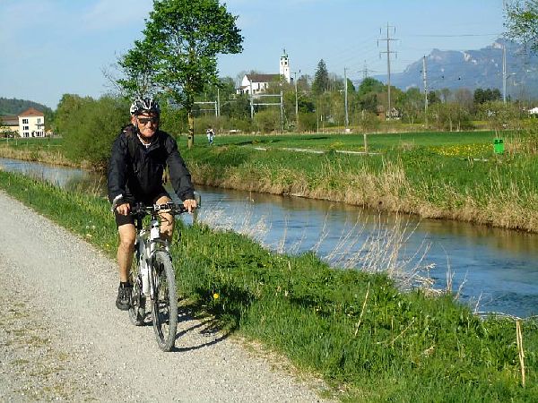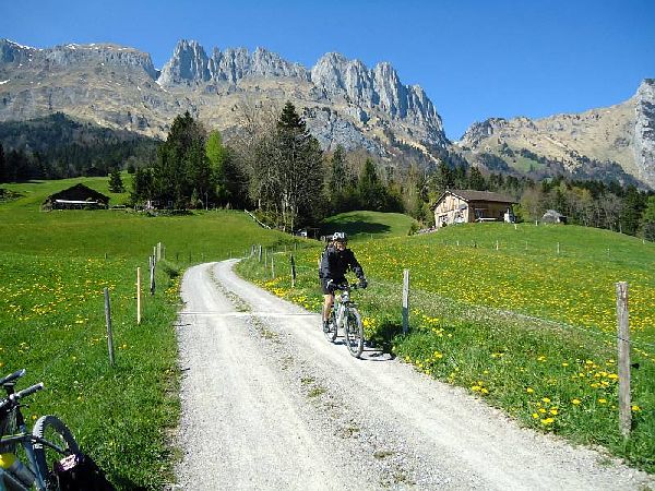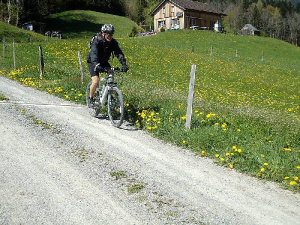 Eine überraschend abwechslungsreiche Tour über dem Rheintal. Der Weg ist durch Werdenberg Tourismus vorbildlich augeschildert. Es handelt sich gleichzeitig um eine Teiletappe des bekannten Alpsteinbikes (www.alpsteinbike.ch) Von Rüthi radelt man dem Binnenkanal entlang bis Sennwald. Auf angenehmen Höhenwegen, vorbei an der Talstation der Staubernbahn (www.staubern.ch, siehe auch Tour Nr 9) gelangt man nach knapp 1 ½ Std auf Nasseel, dem Ausgangspunkt für Wanderungen zur Saxerlücke und dem Appenzeller Bergrestaurant Bollenwees. Nach weitern gut 100 Höhenmetern ist der höchste Punkt, die „Vorderschwendi“ erreicht. Nun öffnet sich der Blick hinüber zum Massiv der Drei Schwestern, während im Rücken die Türme der Kreuzberge in den Himmel ragen. Nun folgt vorwiegend auf Asphalt die vergnügliche Abfahrt nach Gams und weiter entlang des Binnenkanales und auf dem Rheindamm zurück nach Rüthi.