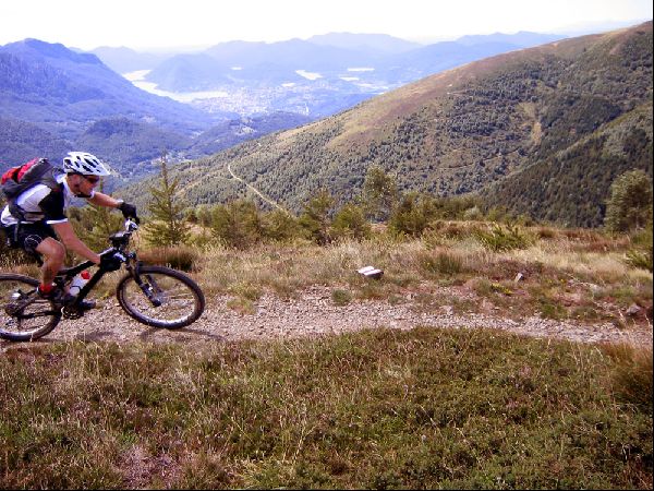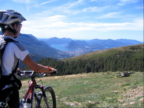 Es folgt einer der schönsten Höhenwege des Tessins, einem herrlichen, aber anspruchsvollen zehn Kilometer langen Singeltrail zur Capanna San Lucio.Ein ständiges auf und ab, gespickt mit herrlichen Fahrtechnikeinlagen. Das überragende Panorama auf die Gegend rund um Lugano entschädigt für den langen Aufstieg. Auf diesem Trail erreichen wir die Hütte von St.Lucio. Hier gibt es die Möglichkeit sich zu Verpflegen. Über den Rücken des San Bernardo gelangen wir über weitere, flüssige und zum Teil recht technische Singeltrails und Asphaltstrassen