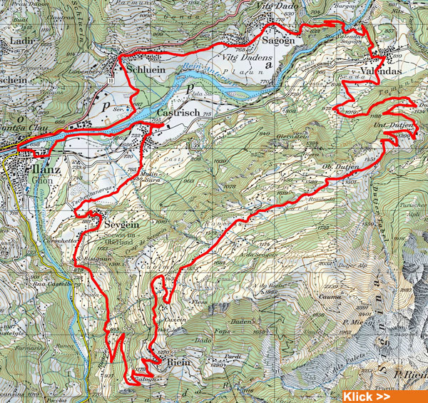 RouteBahnhof Castrisch – Ilanz – Sagogn – Valendas – Dutjen – Riein – Sevgein - Bahnhof Castrisch |