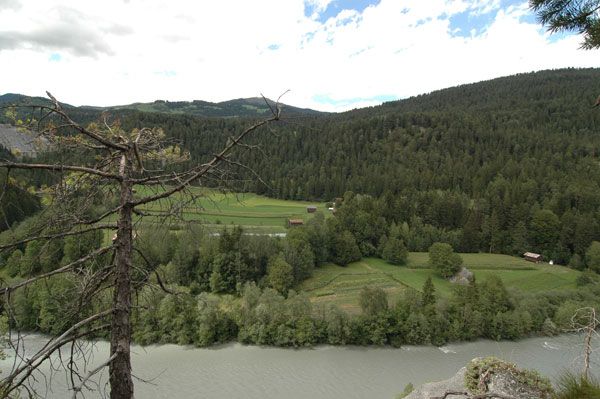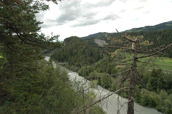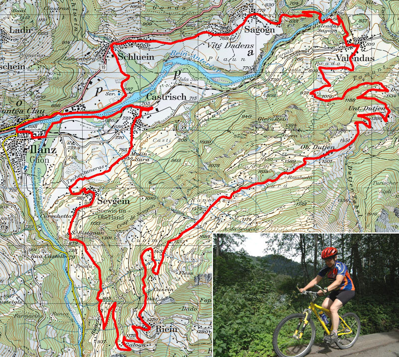 KurztextBiketour in der Region Ilanz, Castrisch, Sagogn, Valendas mit Blick in die Schlucht des Vorderrheins. |