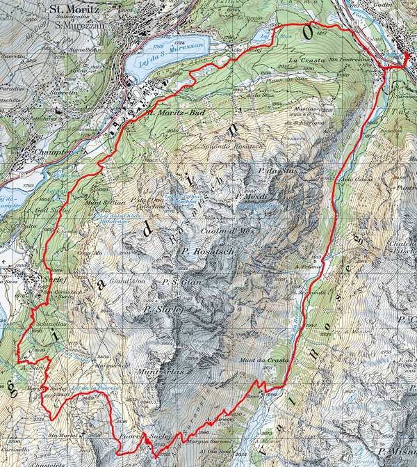Der Aufstieg zur Forcla Surlej hat 2 steile Rampen, wo jeder noch so starke "Bergsteiger" gefordert wird. Für Normalbiker 2 mal ca. 10 Min. schieben. Die Abfahrt ins Val Roseg ist technisch fordernd, aber in einem nicht zu abschüssigen Gelände. Daher halten sich die Gefahren in Grenzen. Guter Übungstrail um die Technik zu verfeinern.