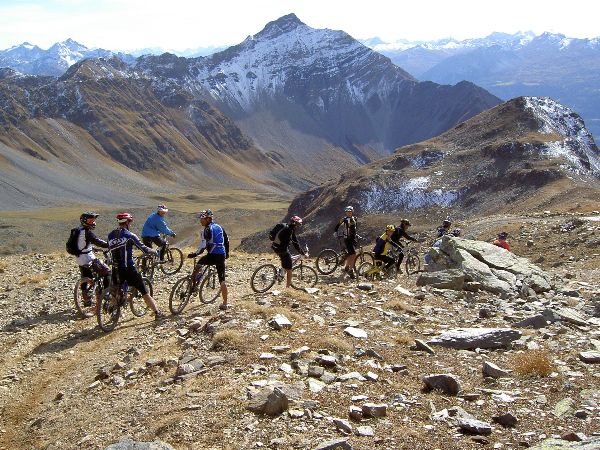 Nach einigen Minuten Rothorn Panoramablick fahren wir hinunter zum Hauptwegweiser und nehmen dann die Bikeroute Runda Lai.