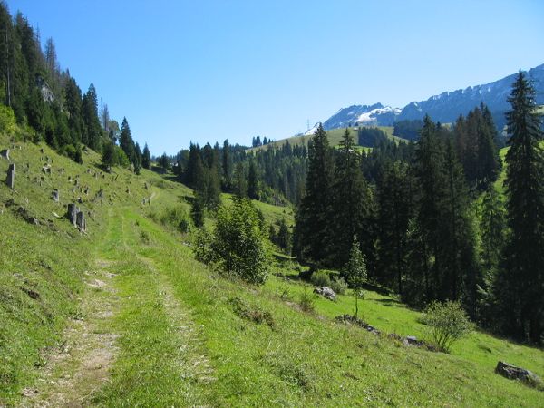 Es folgt eine Abfahrt teilweise durch Fahrverbot mehr oder weniger immer den Masten der Seilbahn nach, hinunter nach Sörenberg. Gewisse Streckenabschnitte sind hier nicht fahrbar. Auf der Hauptstrasse geht es weiter in Richtung Flühli. Kurz nach Sörenberg nehmen wir den Weg in Richtung ARA. Parallel zur Hauptstrasse folgen wir dem schönen Weg der teilweise als Singeltrail durch Wiesen und Wald führt. In Flühli geht es links steil hoch in Richtung Hilfernpass.