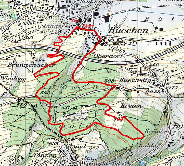 BeschreibungEin Rundkurs von ca. 5 km Länge und 240 Höhenmeter pro Runde. Angenehm zu fahren auf Waldwegen und in technisch einfacherem Gelände. |