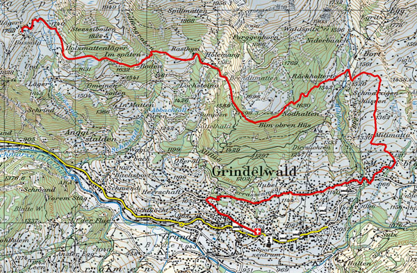 BeschreibungDie Tour startet beim Bahnhof Grindelwald von wo man gemütlich mit dem Bus zur Bussalp fährt. Hier startet die Tour mit dem Mountainbike. Zuerst führt der Weg abwärts Richtung Holzmatten und dann auf der Naturstrasse hinüber in den Hohlenwang. Von dort steigt eine Teerstrasse ca. 1 km leicht an bis der Weg abzweigt Richtung Bort. Nach der Station Bort fällt der Weg recht steil abwärts zurück nach Grindelwald.