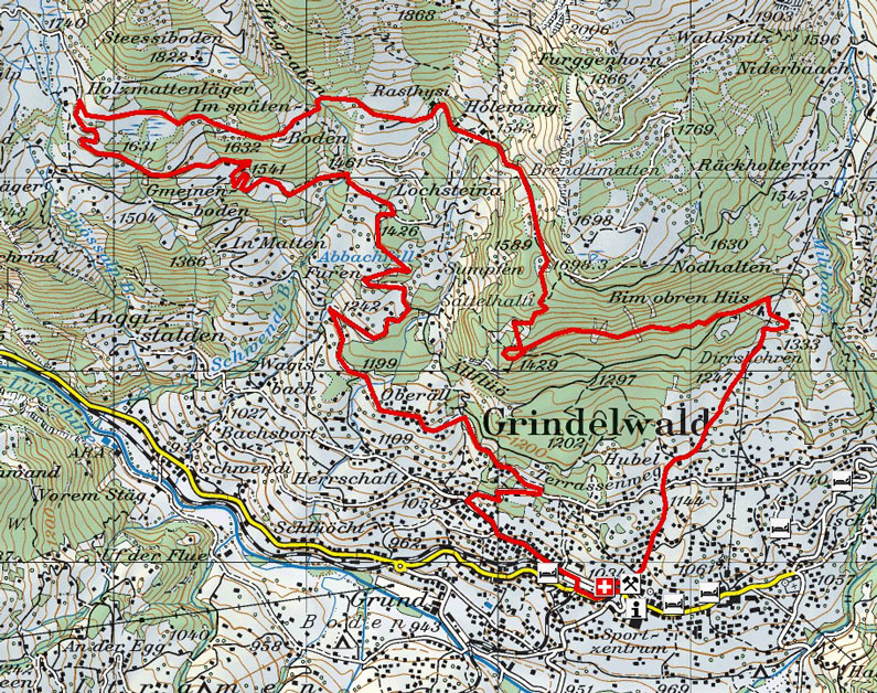 Vom Oberhaus fürt die Tour weiter auf der steilen Teerstrasse über Kreuzweg zurück zum Bahnhof Grindelwald.