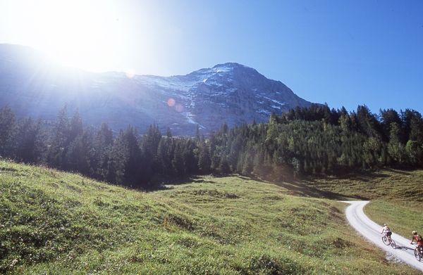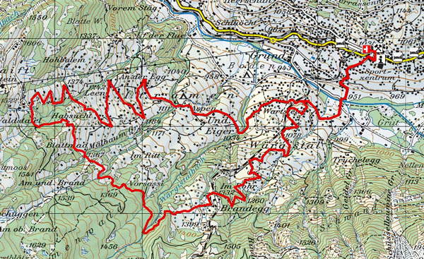 BeschreibungAb dem Bahnhof Grindelwald geht’s abwärts in den Talboden von wo aus die Asphaltstrasse Richtung Männlichen beginnt. Kurz vor der Mittelstation Hohlenstein (GGM) zweigt der Themenweg links ab. Auf der coupierten Schotterstrasse sowie kleinen Trails führt die Strecke durch Wälder und über Bäche zur Brandegg.