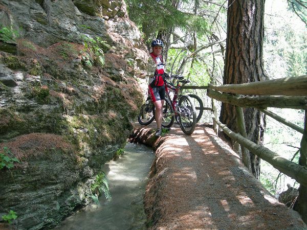 Was kann es Schöneres geben, als auf Waalwegen durch Wälder und Haine, durch Buschwerk und Obstgärten an den Seitenhängen des Vinschgaues zu biken, begleitet vom munteren Plätschern des ruhig dahin fließenden Wassers und dabei den Blick über die zauberhafte Bergwelt des Vinschgaus mit den grünen Niederungen und den schneebedeckten Gletschern schweifen zu lassen?
