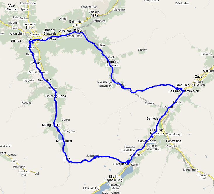 Wichtig: Die Tour unbedingt im Uhrzeigersinn fahren. Der Aufstieg von Filisur über Bergün hoch zum Albula-Pass ist ein absoluter Klassiker und wahrscheinlich eine der schönsten Steigungen für Rennvelofahrer auf diesem Planeten überhaupt.