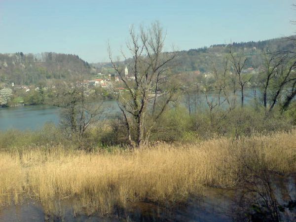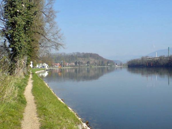 Hier ändern sich der Charakter und die Richtung der Wanderung. Wir wechseln zum Rhein und folgen diesem zum Dorf Wallbach, wo noch auf der Höhe der letzten Häuser die ersten Spuren des Bibers zu sehen sind. Ennet dem Rhein sieht man die meist gleichnamigen deutschen Dörfer. Unsere Wanderung führt auf einem Waldweg direkt am Rhein bis zum Naturschutzgebiet eines Auenwaldes, das direkt vis à vis von Schwörstadt (D) liegt.