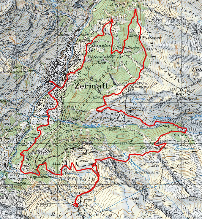 BeschreibungWunderschöne Tour auf Waldweg bis Sunnegga. Ab Riffelboden wird der Weg sehr steil und führt entlang der Gornergrad-Bahn hinauf zum Riffelberg. Da dieser Weg im Winter ebenfalls als Skipiste dient, ist das Material sehr lose und schwer zu befahren.