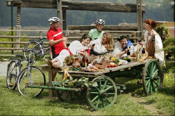 BeschreibungDas Römersteinmuseum ist ein „Muss-Besuch“ auf dieser Radtour, denn nur so bekommt man Einblick in die Geschichte der Region. Anschließend kann man die vor Wissen dampfenden Köpfe in der Therme Bad Waltersdorf abkühlen lassen, bevor ein perfekter Familienurlaubstag dann doch ein Ende nimmt.