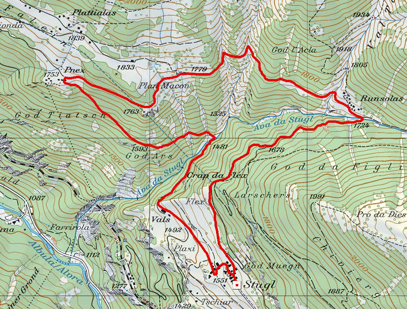 Start der Tour Stugl/Stuls / GR