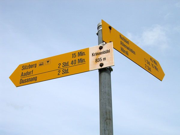 Über den Rüetschberg und Ettenhausen nähern wir uns dem letzten Anstieg des Tages, dem Krillberg oberhalb von Tuttwil. Hier öffnet sich ein toller Ausblick über Wängi, das Murgtal und das Lauchetal bis zum Schloss Sonnenberg.
