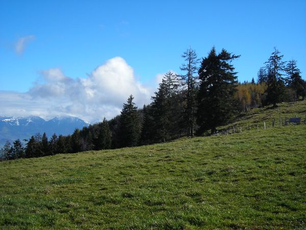 Es folgt ein kurzer Abstieg zum St. Meinrad (Etzel Pass). Sehensert ist dort die Kapelle. An dieser vorbei steigt nun der Weg leicht Richtung Stöcklichrüz an. Dieser Anstieg ist sanft bis zum Gipfel des Stöcklichrüzes. Auch hier können wir die überwältigende Aussicht geniessen und uns auch verpflegen. Rund um den Triangolationspunkt bieten Sitzbänke zum Ausruhen an. Der Abstieg erfolgt Richtung Diebishütten, wo man an den Wochenenden die Gelegenheit für eine Einkehr in der Alpwirtschaft hat. Danach folgt ein eher steilerer Abstieg Richtung Altendorf. Der Weg eher steil und trotz Markierung teilweise schlecht sichtbar. Er führt über Wiesen und durch Wälder. Trotzdem lohnt sich dieser Weg, wird er doch nicht von allen begangen. Den Rückweg nach Hause treten wir dann beim Bahnhof Altendorf an.