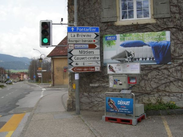 BeschreibungDer Start befindet sich mittem im Dorfzentrum. Die Strasse steigt zuerst moderat bis zum Dorfausgang unter der Eisenbahnbrücke durch und steigt danach etwas steiler im Wald Richtung La Brévine. Nach der Einmündung in die Strasse von Fleurier geht es regelmässig moderat hoch, durch einen kleinen Felstunnel, bevor man in die typischen Jurahügel dem Ziel entgegen rast. Der letzte Teil ist wiederum etwas flacher, wer noch Punsch hat, kann da richtig Tempo machen.