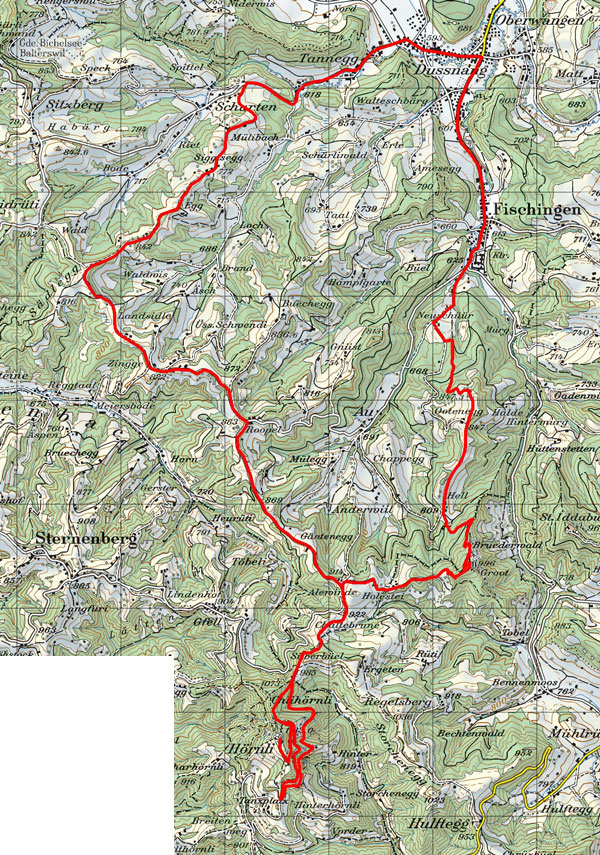 Über "Hell" und "Ootenegg" gelangen wir nach Fischingen und weiter bis zum Ausgangspunkt Dussnang.